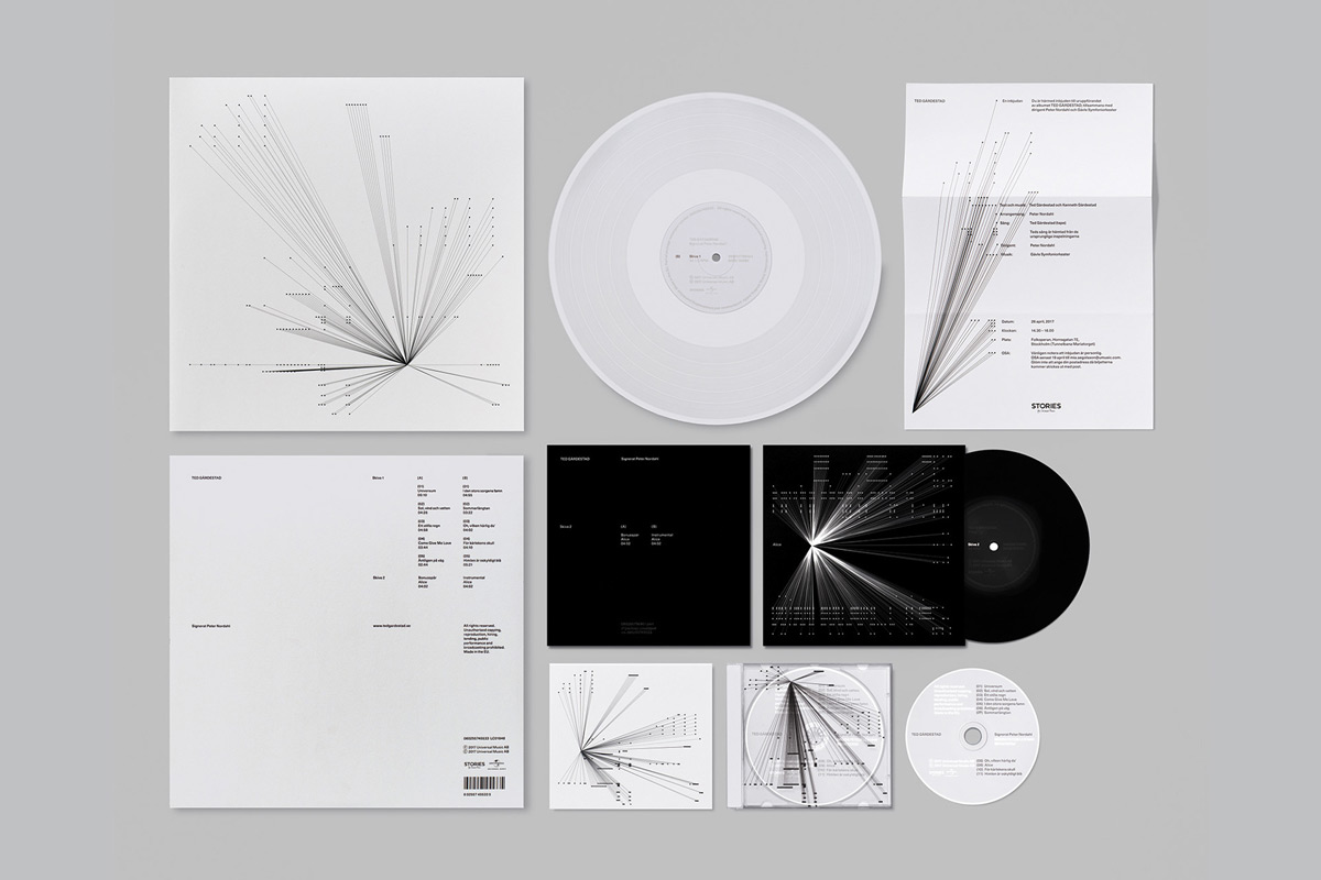 一個(gè)圖形設(shè)計(jì)概念,該概念深受TedG?rdestad的音樂和歌詞的啟發(fā)。結(jié)果是基于多層的視覺識(shí)別,象征著音樂的音符,運(yùn)動(dòng)和流動(dòng)。此外,它代表了項(xiàng)目中所有相關(guān)方之間的協(xié)作。創(chuàng)建了一個(gè)圖形系統(tǒng),VI設(shè)計(jì)系統(tǒng)具有很高的識(shí)別性和靈活性,其中每首歌曲都有基于音符的獨(dú)特組成。